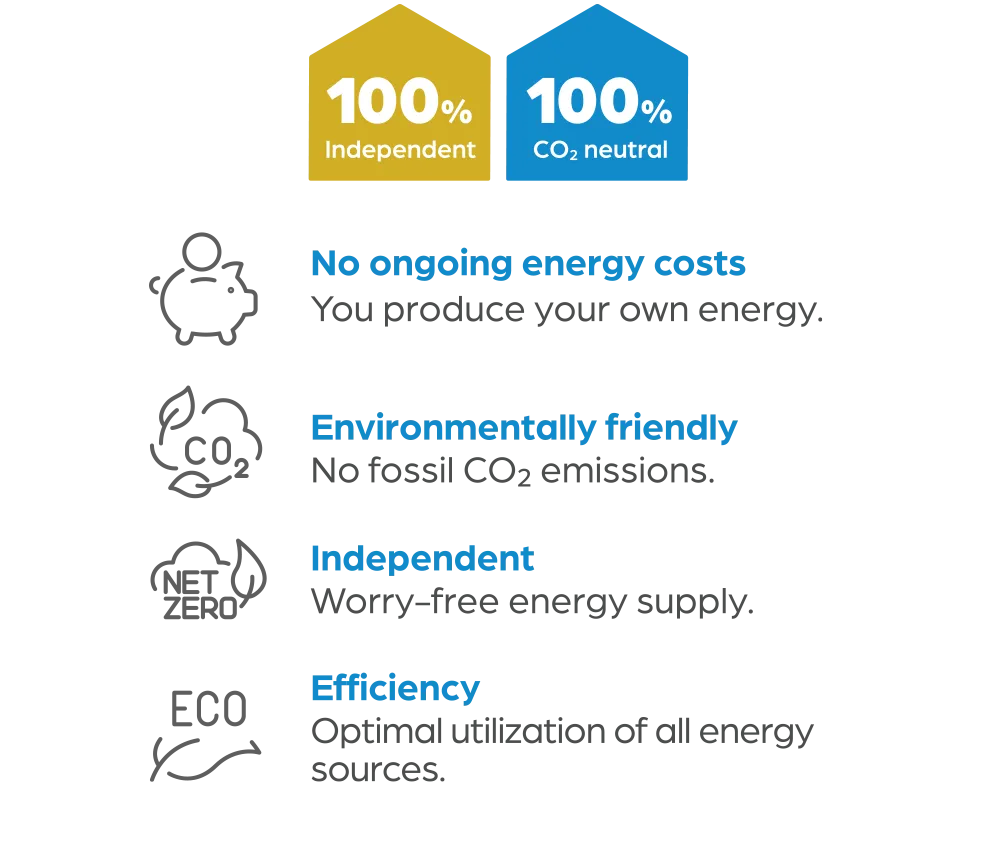 - Energieunabhängigkeit bedeutet Freiheit. Stell dir vor: Dein Zuhause erzeugt den Strom und die Wärme, die du benötigst.